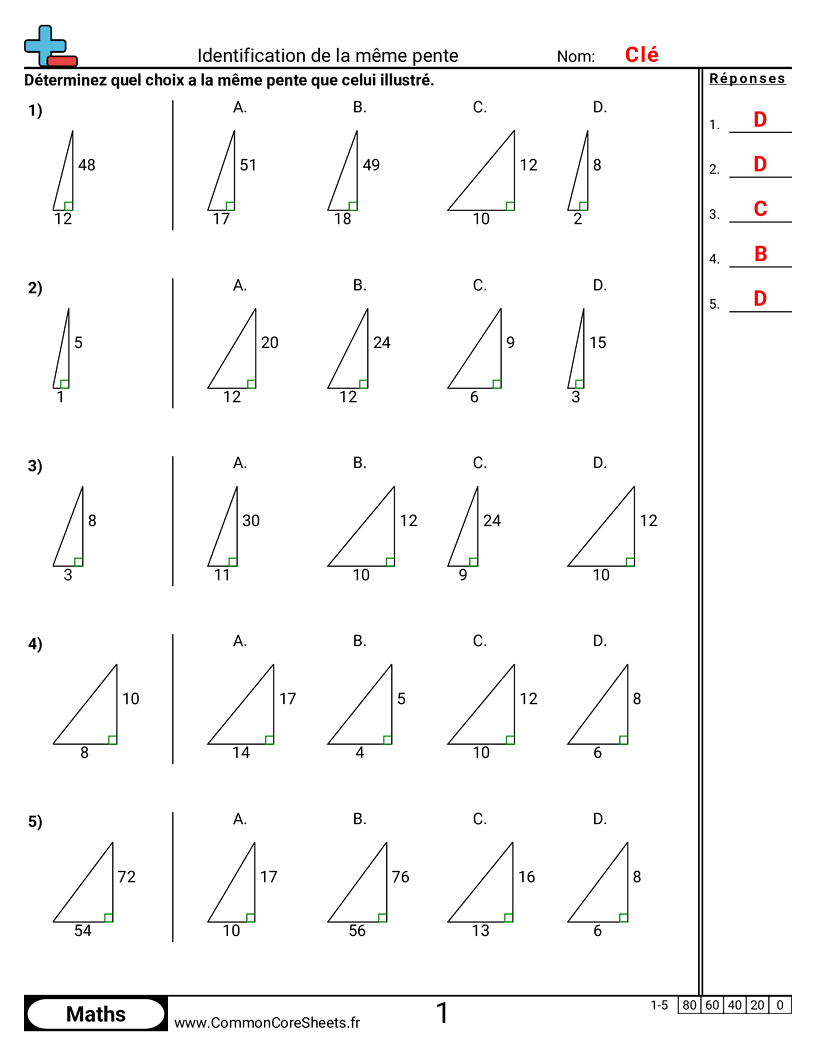 Fiches gratuites de math pour 4ème (8ee6) sur Identification de la même pente. Chaque fiche contient 5 exercices avec corrigé et convient aux enseignants et à l'enseignement à domicile. Vous pouvez télécharger le PDF, créer des cartes mémoire ou l'utiliser pour l'apprentissage en ligne.